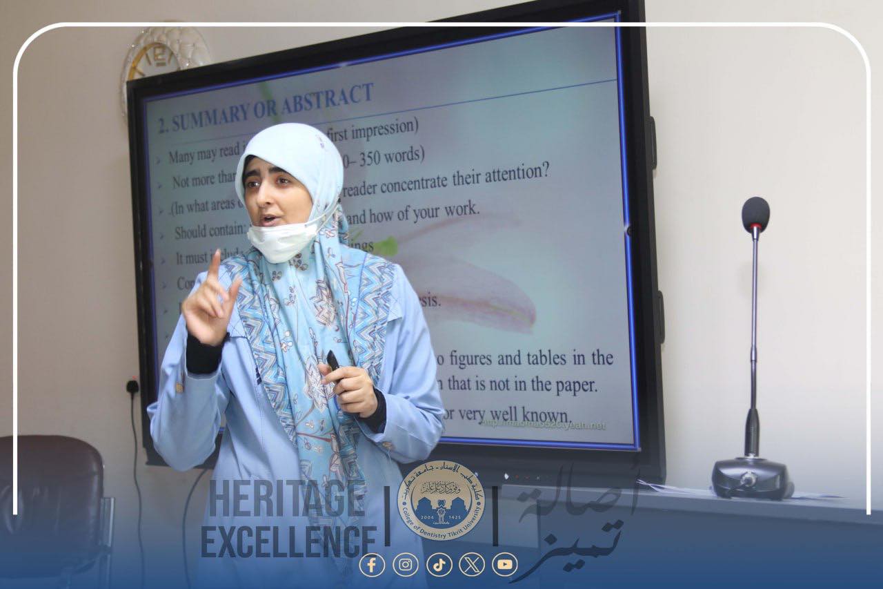 وتأتي هذه الفعالية ضمن جهود مركز التعليم المستمر وكلية طب الأسنان في دعم الطلبة والباحثين، وتعزيز قدراتهم الأكاديمية بما ينسجم مع معايير الجودة والرصانة العلمية في جامعة تكريت.