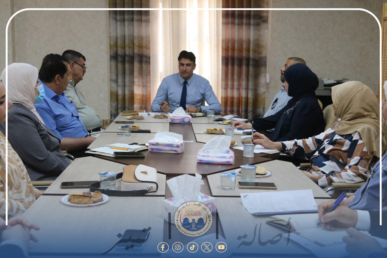 عقد مجلس كلية طب الأسنان في جامعة تكريت جلسته الاعتيادية الحادية عشرة يوم الاثنين الموافق 28 تموز 2025، وذلك بحضور السيد عميد الكلية وجميع أعضاء المجلس.