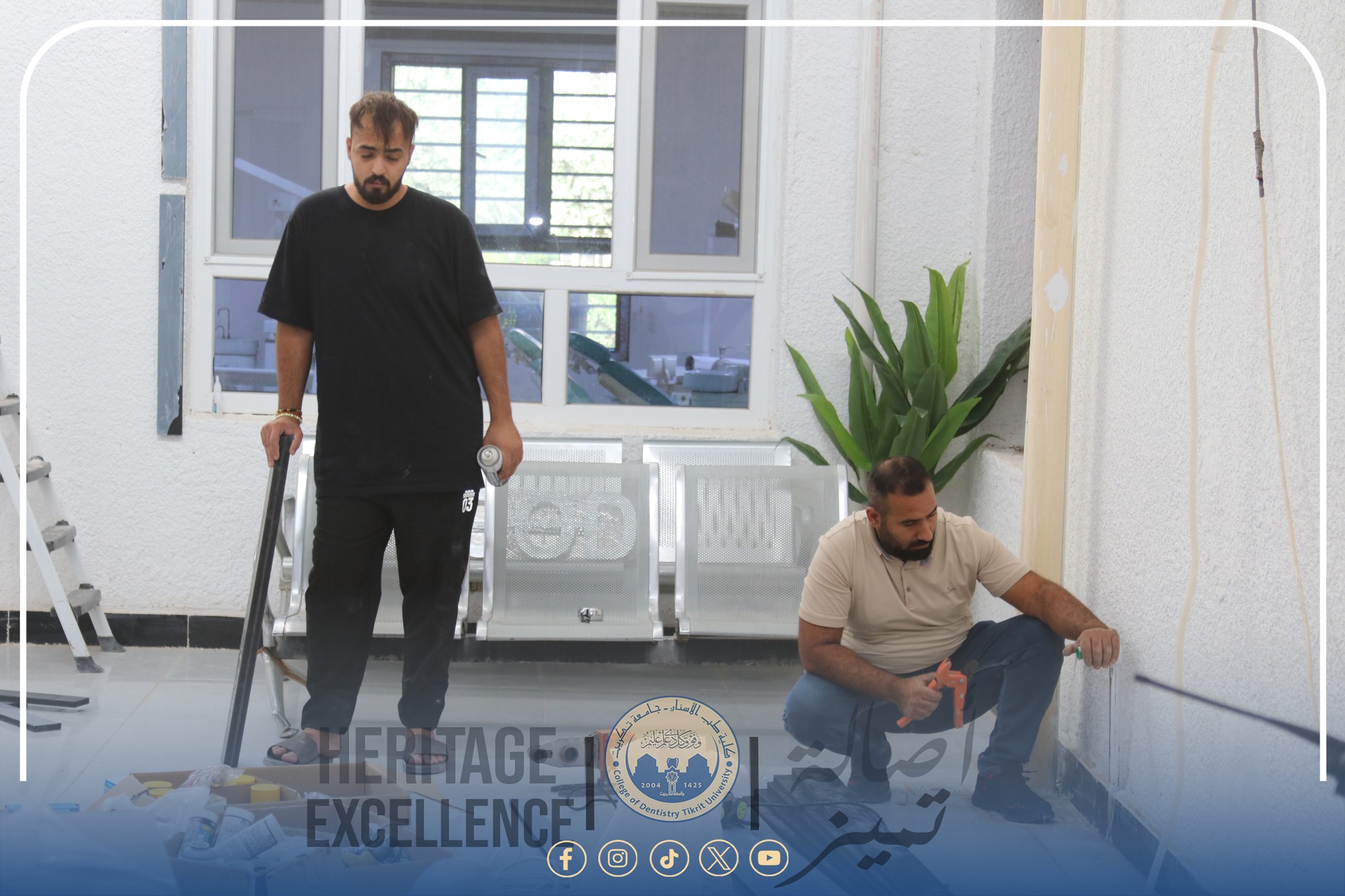 وأثنى سيادته على جهود وحدة الخدمات وكوادر الصيانة في متابعة تفاصيل العمل وتنفيذه بجودة عالية، مؤكداً أن هذه الحملة تأتي ضمن الخطة التطويرية لعمادة الكلية الهادفة إلى الارتقاء بالبنى التحتية والمرافق الخدمية، وتعزيز المظهر الحضاري لكلية طب الأسنان وجامعة تكريت بشكل عام.