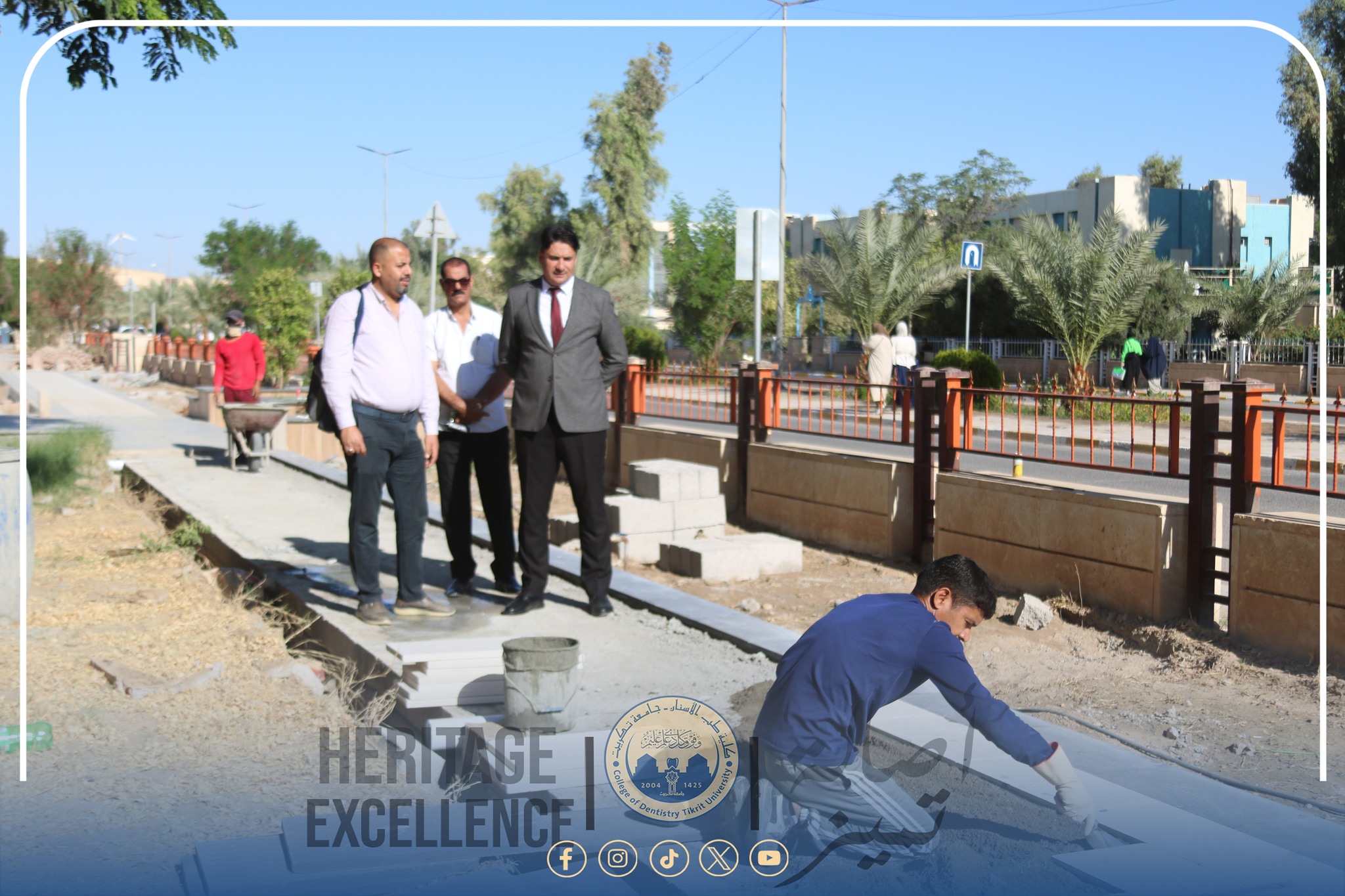 في إطار الجهود المستمرة لتطوير البيئة الجامعية وتحسين الخدمات داخل كلية طب الأسنان بجامعة تكريت، أجرى السيد عميد الكلية الأستاذ المساعد الدكتور محمد رحيل علي جولةً تفقدية للاطلاع على سير حملة إعادة تأهيل أروقة الكلية والحدائق الأمامية وعدد من المرافق داخل الأبنية.