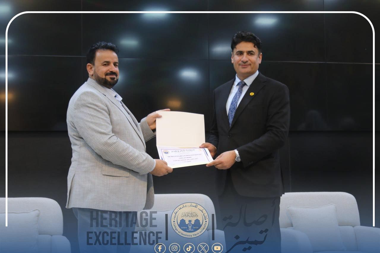 "إن كليتنا تسير بخطى ثابتة نحو التميز الأكاديمي والبحثي. هدفنا الأساسي هو إعداد جيل من أطباء الأسنان يتمتعون بأعلى درجات الكفاءة العلمية والأخلاق المهنية، لخدمة مجتمعنا ووطننا العزيز ومواكبة أحدث التطورات العالمية في طب الأسنان."
