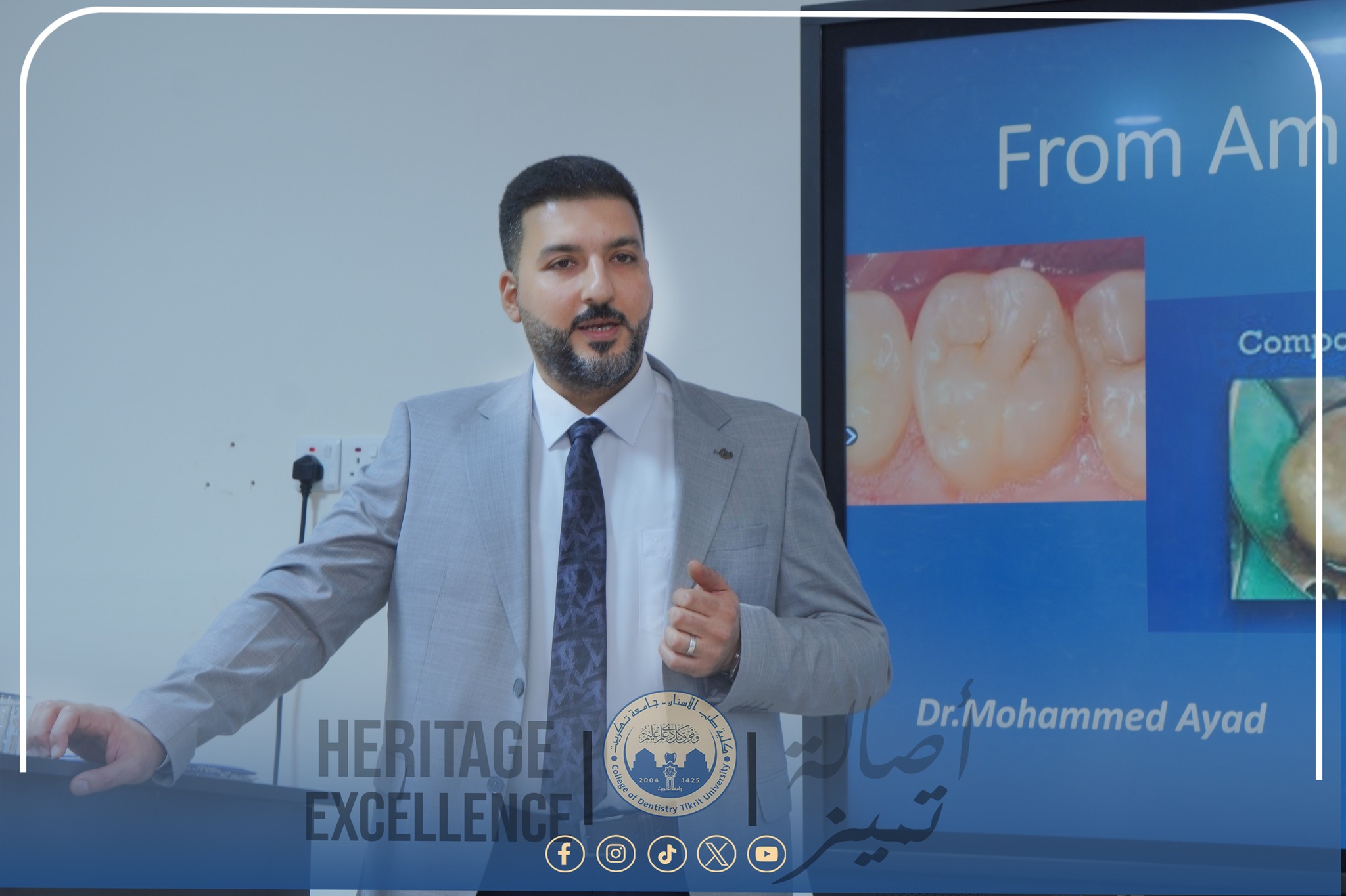 ألقى الدورة المدرس محمد إياد طه، وتناول فيها أحدث المفاهيم المتعلقة بالتحول من استخدام حشوات الأملغم إلى الحشوات الكمبوزيت الخلفية، مسلطًا الضوء على الجوانب العلمية والتقنية والفنية المرتبطة بهذا التحول، وأهميته في تحسين جودة الترميمات السنية ومواكبة التطورات الحديثة في طب الأسنان التجميلي.