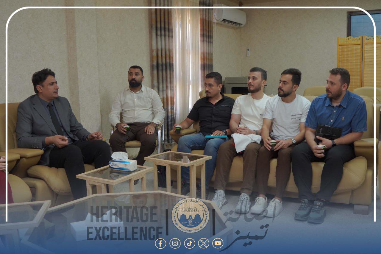 التقى عميد كلية طب الأسنان في جامعة تكريت الأستاذ المساعد الدكتور محمد رحيل علي بطلبة الدراسات العليا المقبولين للعام الدراسي 2025 – 2026، وذلك في إطار حرص الكلية على دعم المسيرة العلمية والأكاديمية وتعزيز التواصل مع طلبتها.